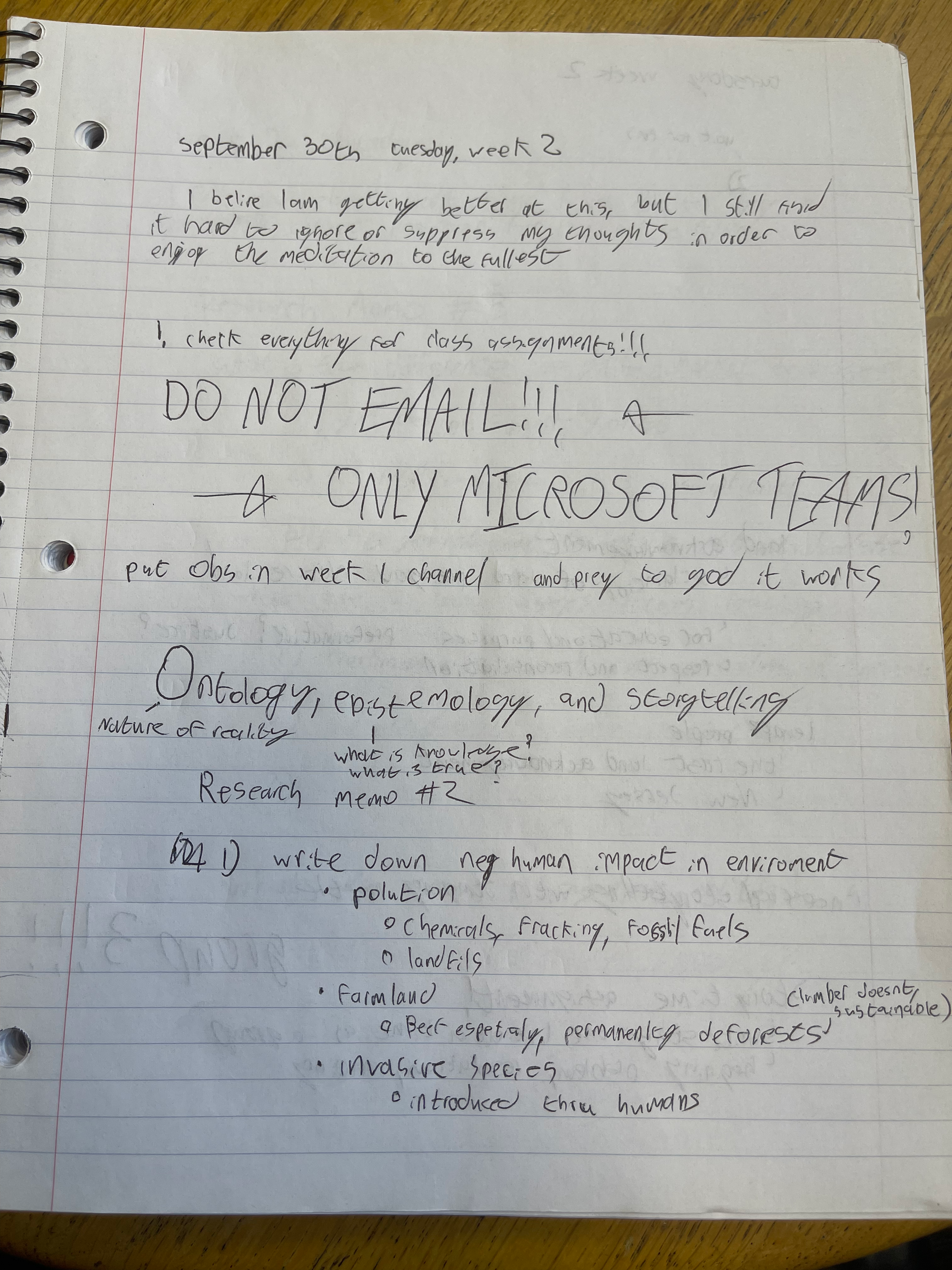 My notes are very much a stream of conciousness. Often times the notes are only legible to me, as I am the only intedned audience. Had I writtten this with other people in mind, It would not be as useful for me. The doodles are often tools I used to remember what my mind was doing at the time, which remember the lecture better. I appologize if it is not legible and appears to be nonsense. I have written their content in text in the data page for ease of reading.